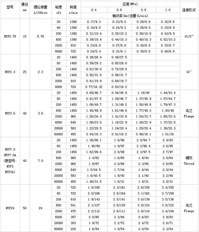四、nyp高粘度泵技術(shù)參數(shù):