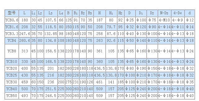 泰盛泵閥提供_全的YCB圓弧齒輪泵各型號的安裝尺寸及重量,YCB圓弧齒輪泵齒輪采用雙圓弧正弦曲線齒形制造。它與漸開線齒輪相比_突出的優(yōu)點是齒輪嚙合過程中齒廓面沒有相對滑動,所以齒面無磨損,運(yùn)轉(zhuǎn)平穩(wěn),無因液現(xiàn)象,噪音低、壽命長、效率高。YCB圓弧齒輪泵主要有齒輪、軸、泵體、泵蓋、軸承套、軸端密封等組成。齒輪采用雙圓弧正弦曲線齒形制造。它與漸開線齒輪相比_突出的優(yōu)點是齒輪嚙合過程中齒廓面沒有相對滑動,所以齒面無磨損,運(yùn)轉(zhuǎn)平穩(wěn),無因液現(xiàn)象,噪音低、壽命長、效率高。該泵擺脫了傳統(tǒng)設(shè)計的束縛,使得齒輪泵在設(shè)計、生產(chǎn)和使用上進(jìn)入了一個新的領(lǐng)域。