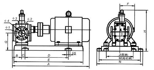 YCB圓弧齒輪泵外形、安裝尺寸